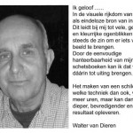 Kortom de schilder Walter van Dieren nodigt u uit om zijn kunstwerken eens te komen bekijken en hij hoopt dat u zult genieten van de intentie van zijn werken.
