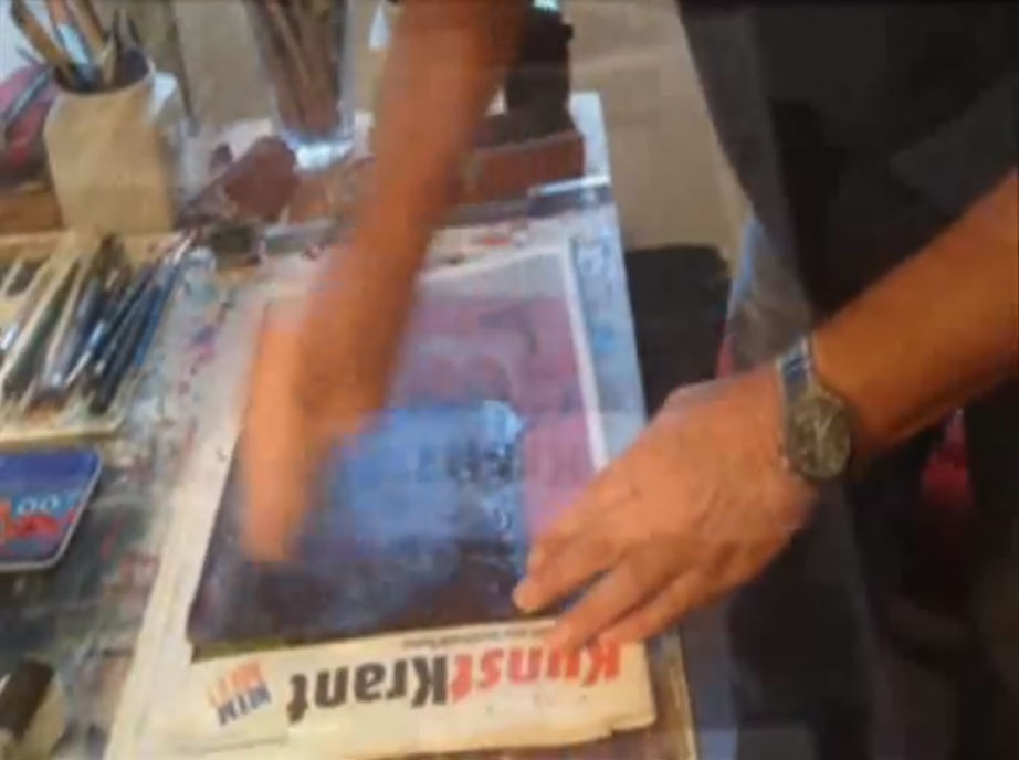 KZOD-lid Hans Duivenvoorden verkoopt Lino-snedes die te zien zijn en eventueel te koop a.s. Zaterdag 27 oktober tijdens de Heereparade in Lisse.