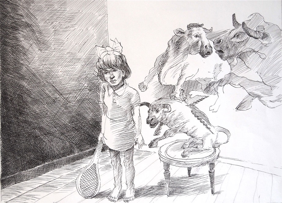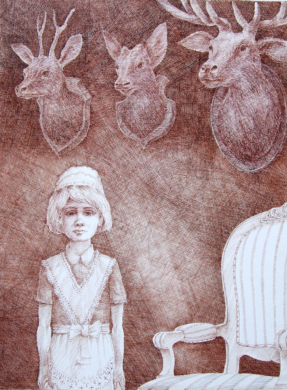 Het ontstaan-proces van deze portretten wordt door Rob uitvoerig met voorbeelden toegelicht. Daarbij kunnen opgedane ervaringen tijdens poseersessies van invloed zijn. Het toeval kan zeker een rol spelen, een bepaald gezicht doet hem – al schetsend – plotseling denken aan een oude vriend, een ander gezicht op een gebeurtenis met een familielid na een huiselijk drama in het verleden. Bij het maken van een tekening van een jong meisje voor een wand met hertenkoppen realiseerde hij zich plotseling dat hij onbewust een jeugd portret van zijn grootmoeder had gemaakt. Een spannend traject noemt de beeldend kunstenaar het maken van de portretten waar hij het afgelopen jaar mee bezig is geweest. Een proces van eindeloos arceren in sepia, inkt of zwart krijt en vervolmaking met andere materialen. Met als resultaat: een jeugd portret!
