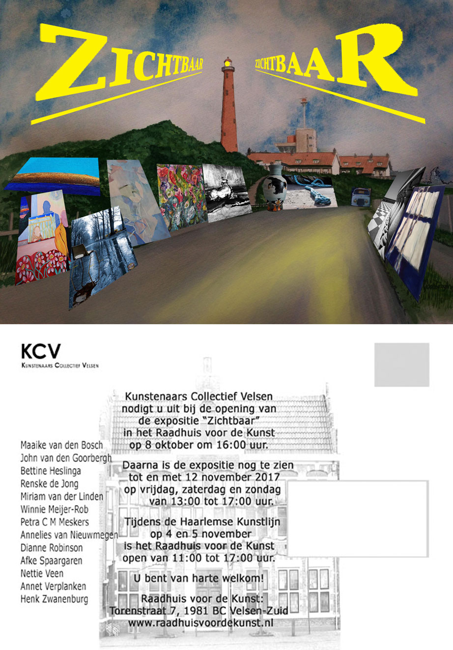 Volgende week vindt de start plaats van de Kunstlijnexpositie van leden van het Kunstenaars Collectief Velsen (KCV) in het Raadhuis voor de Kunst in Velsen-Zuid.