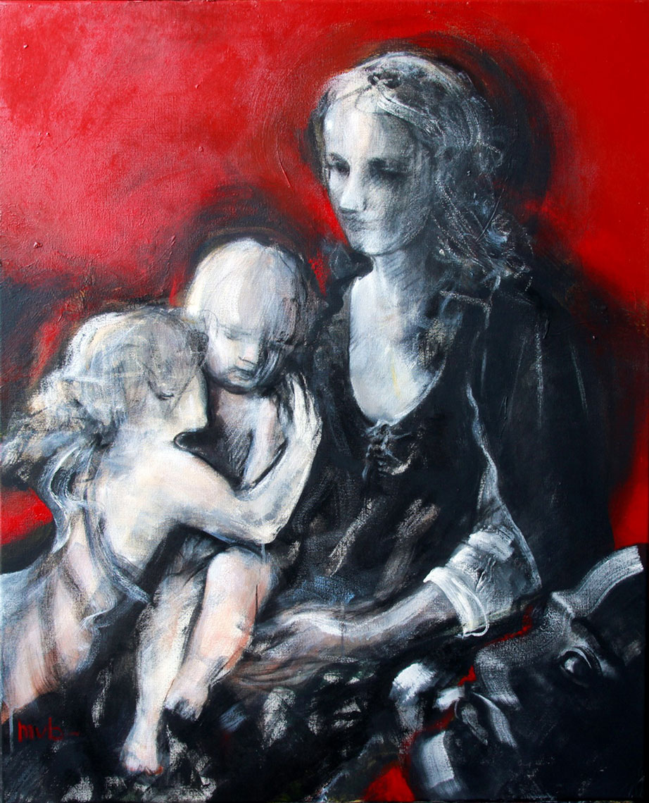 Marjan heeft gedurende de afgelopen twee jaar gestaag in haar Haarlemse atelier gewerkt aan dit bijzondere oeuvre. Een overzicht van de geëxposeerde werken laat zien dat het gekozen thema de beeldend kunstenares zeer aan het hart ligt! Zonder meer bewonderenswaardig hoe zij er in geslaagd is om zowel in de kleurrijke schilderijen als in de simpele schetsmatige tekeningen tederheid en geborgenheid tot uitdrukking te laten komen. Uit alles straalt een immense moederliefde, zoals op de uitnodiging nadrukkelijk als boodschap vermeld: Kinderen en kleinkinderen, dank!