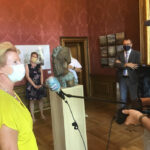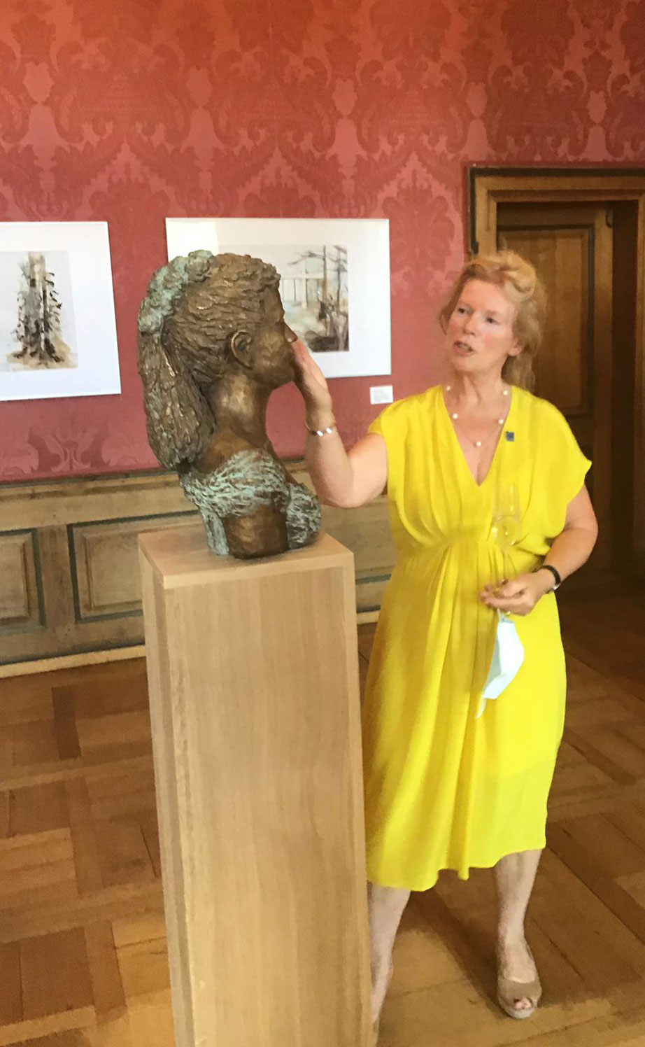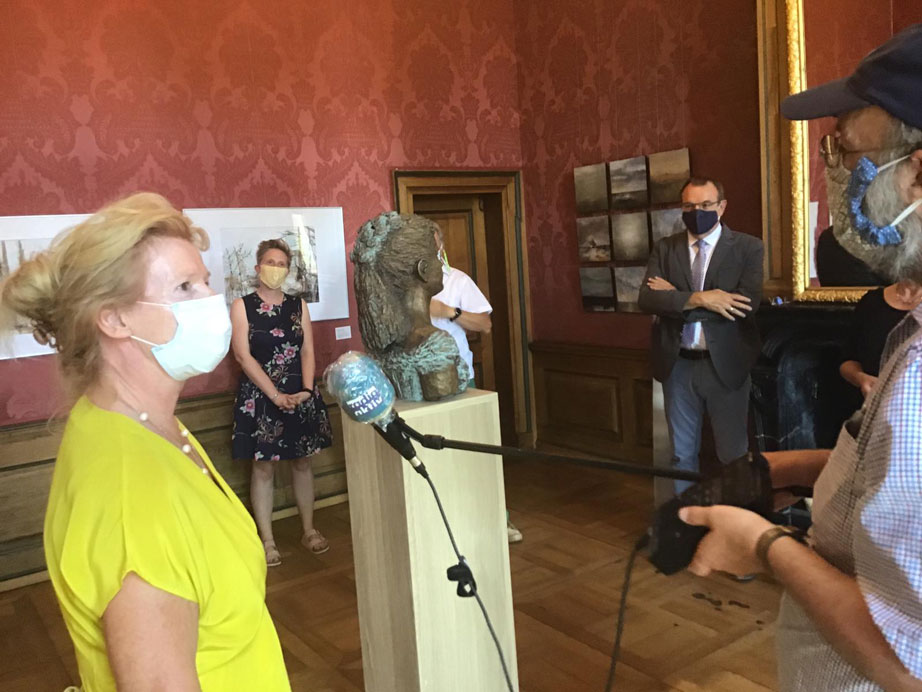Onthulling van het door Ellen Wollf gecreëerde borstbeeld van koningin Emma van Waldeck Pyrmont im Schloss Bad Pyrmont door burgemeester Dhr. Bloomen.
