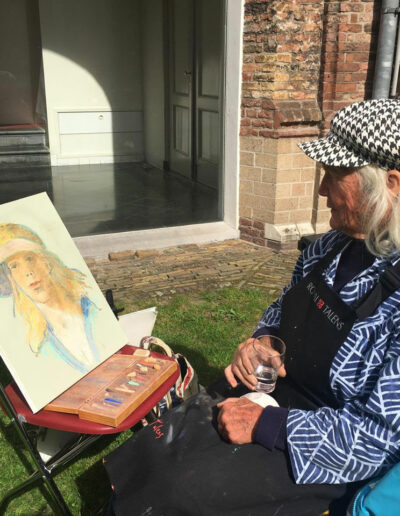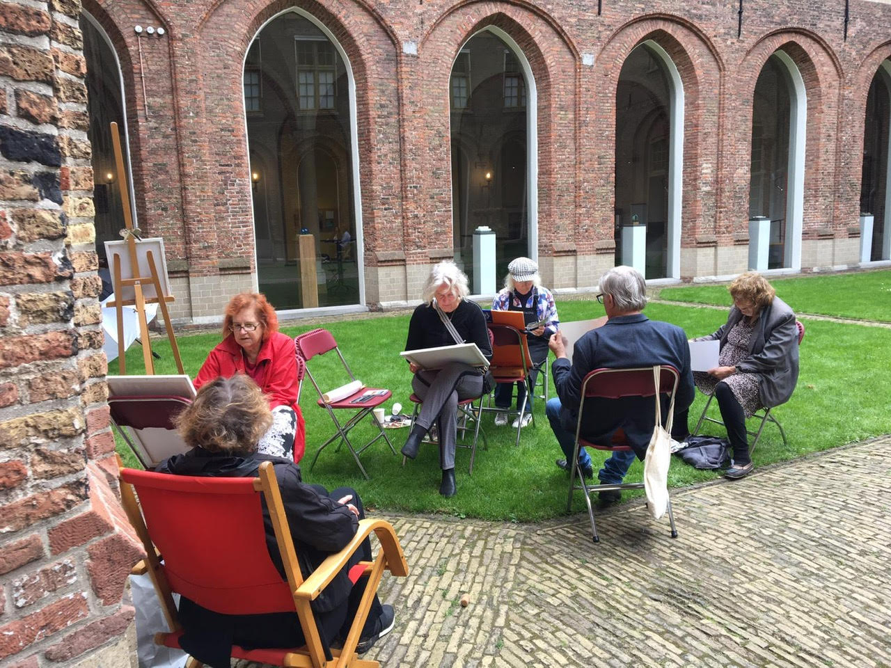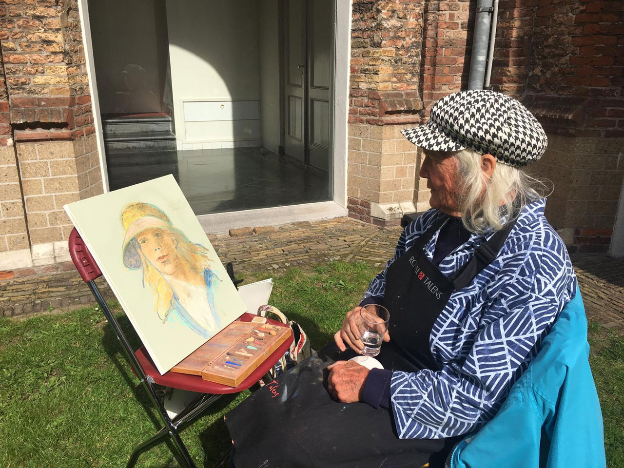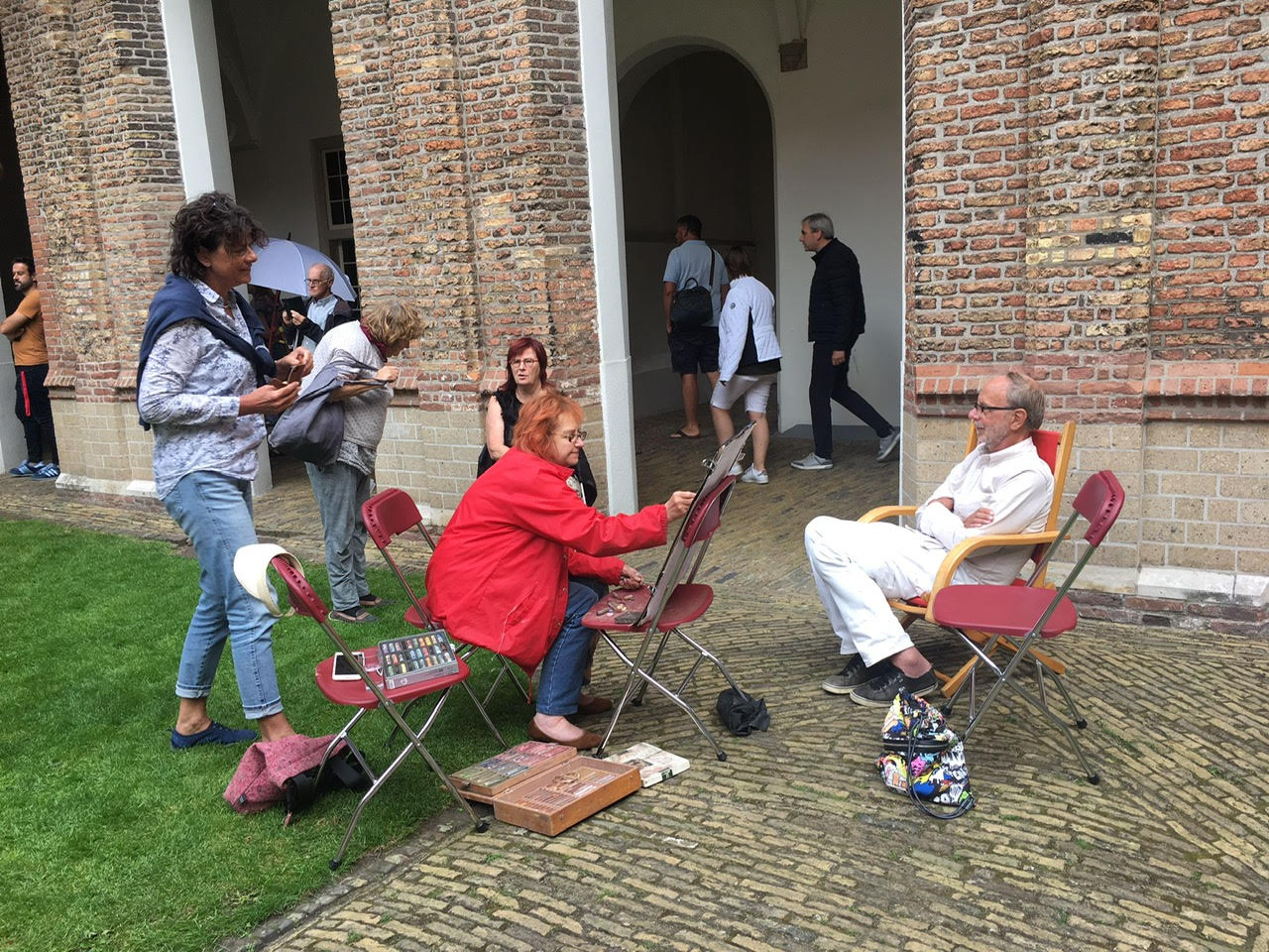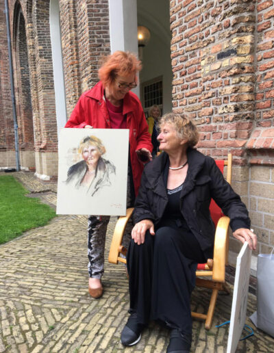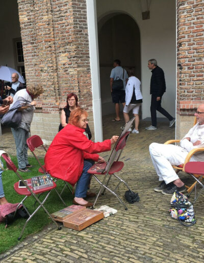 KZOD tekende of schilderde weer portretten in de Kloostergangen van het stadhuis.