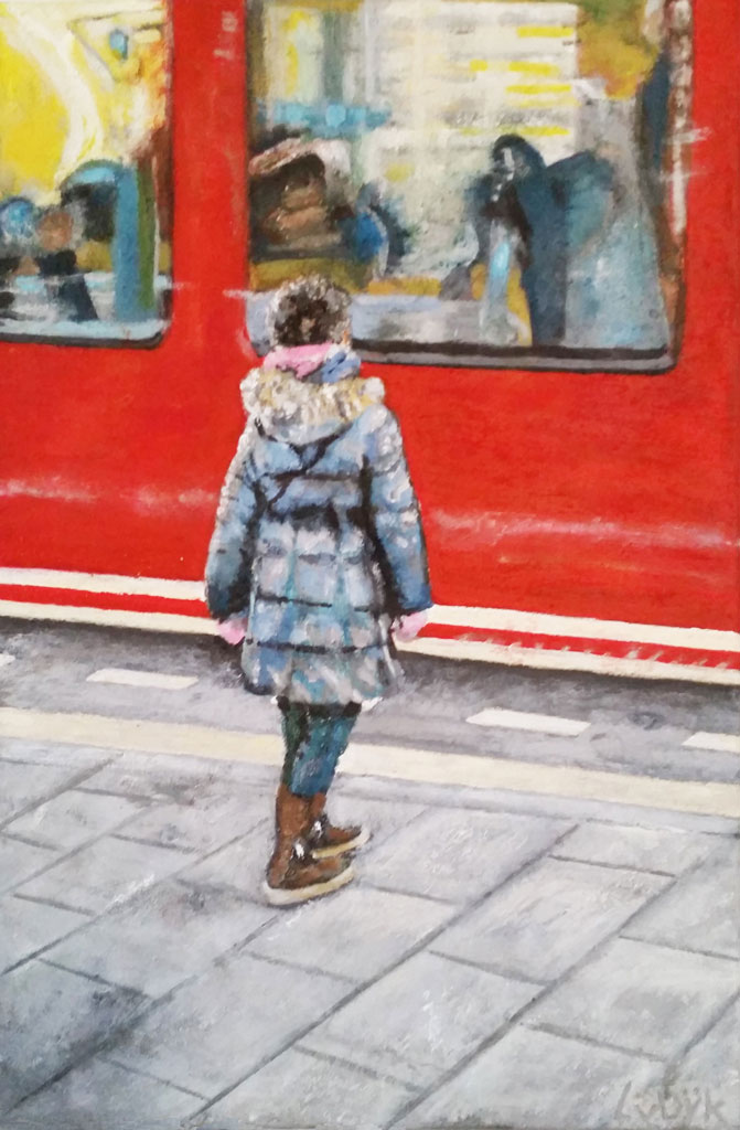 Lizan van Dijk, beeldend kunstenares uit Haarlem, exposeert de komende drie weken met een nieuwe serie schilderijen in Galerie De Waag aan het Spaarne in Haarlem. Het thema van haar expositie luidt Terminus, in de Romeinse oudheid de god van de grenzen. Bij treinreizigers kan Terminus weemoedige herinneringen oproepen aan klassieke hotels tegenover treinstations zoals bij het Gare du Nord in Parijs. Daarnaast vormde dit vroeger de gebruikelijke aanduiding voor het eindpunt van een tramlijn. Het is een thema dat Lizan, zelf voortdurend reizend tussen haar ateliers in Haarlem en in Zuid Frankrijk, in feite op het lijf geschreven is. Bij haar roepen de beelden van stations vol gehaaste mensen, de perrons met een melee van wachtende reizigers veel emoties op. De bijzondere ambiance, de bedrijvigheid, de commotie en de soms desolate stilte binnen een station intrigeren haar mateloos.